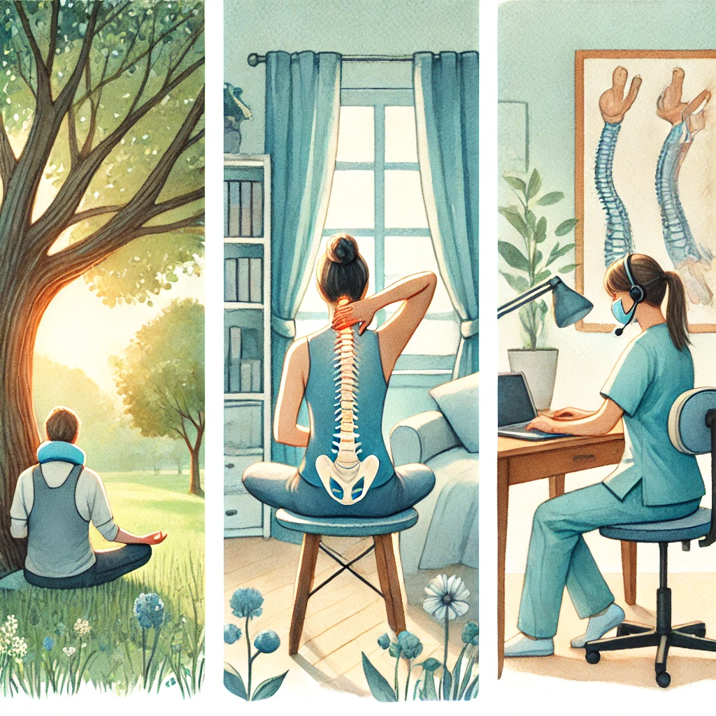 - 스트레스는 근육 긴장과 통증을 악화시키므로 명상, 요가, 심호흡을 활용.